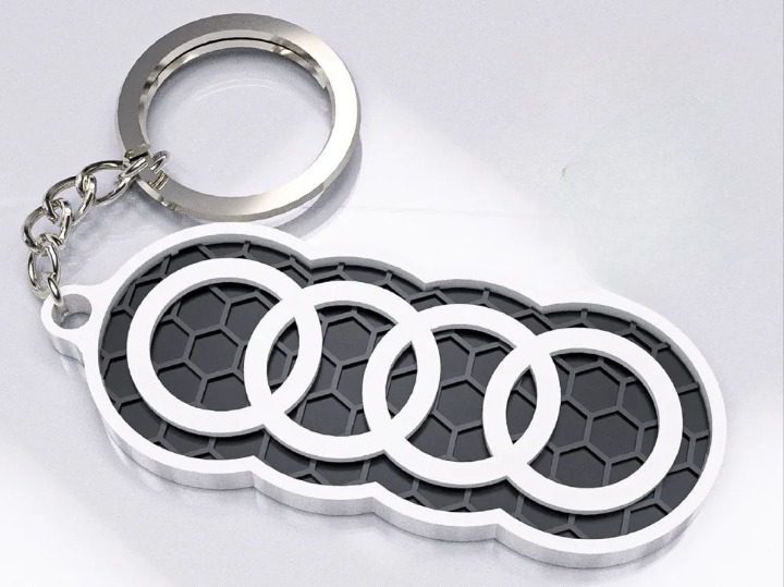 Brelok logo audi: Wymiary 6,7cm x 2,7cm x 0,4cm