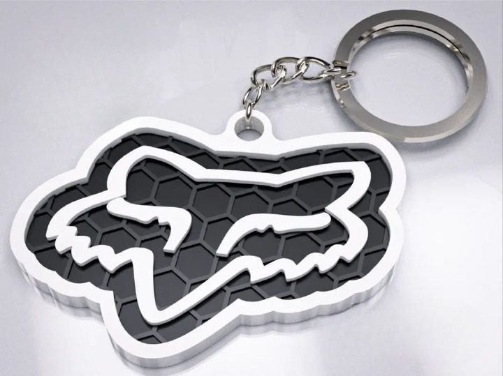 Dynamiczny brelok z logo Fox Racing – dla fanów motocrossu i ekstremalnych sportów.