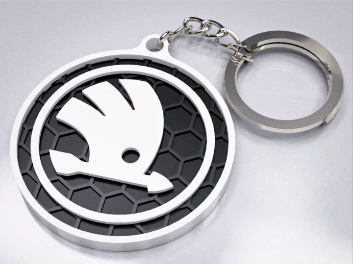 Klasyczny brelok z okrągłym logo Škoda – praktyczny i elegancki dodatek do kluczy.